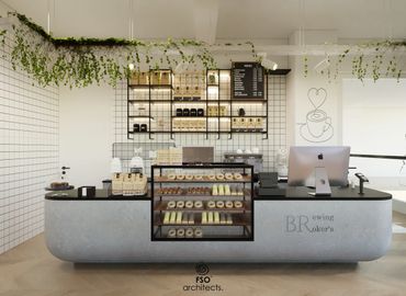 Brewing Broker stands out as a delightful design in our portfolio, seamlessly blending modern amenities with versatile spaces for hosting a range of events. The cafe's focal point is its unique counter, meticulously crafted from exposed concrete and stone, showcasing a perfect harmony of raw beauty and functionality. As daylight fades, Brewing Broker transforms into a captivating space illuminated by mesmerizing blue neon lights, creating an enchanting evening ambiance that draws in visitors and sets the mood for memorable experiences.